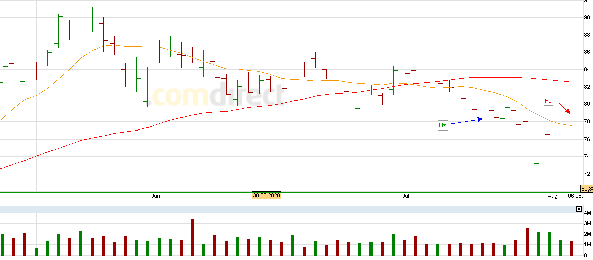 Trendy Geschrieben 2. August 2020 Teilen Geschrieben 2. August 2020 mögliche Signale vom 31.07.20 Hornbach HLD SB: 82,42; SL: 81,57; TP: 85,08; Risiko: 0,85; geplanter Profit: 2,66 --> CRV: 3,13 leider habe ich keine weiteren Chancen gefunden. Zitieren Link zu diesem Kommentar Auf anderen Seiten teilen Mehr Sharing-Optionen...