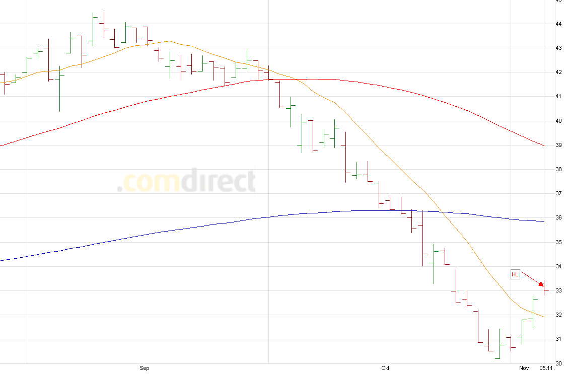 Trendy Geschrieben 5. November 2020 Autor Teilen Geschrieben 5. November 2020 Donnerstag, 05.11.20 Signal: Software AG SS: 32,76; SL: 33,19 TP: 30,21; Risiko: 0,43; geplanter Profit: 2,55 --> CRV: 5,93; nächster Termin: 03.02.21; Tages- u. Wochenchart im Abwärts-, Monatschart im Aufwärtstrend Zitieren Link zu diesem Kommentar Auf anderen Seiten teilen Mehr Sharing-Optionen...